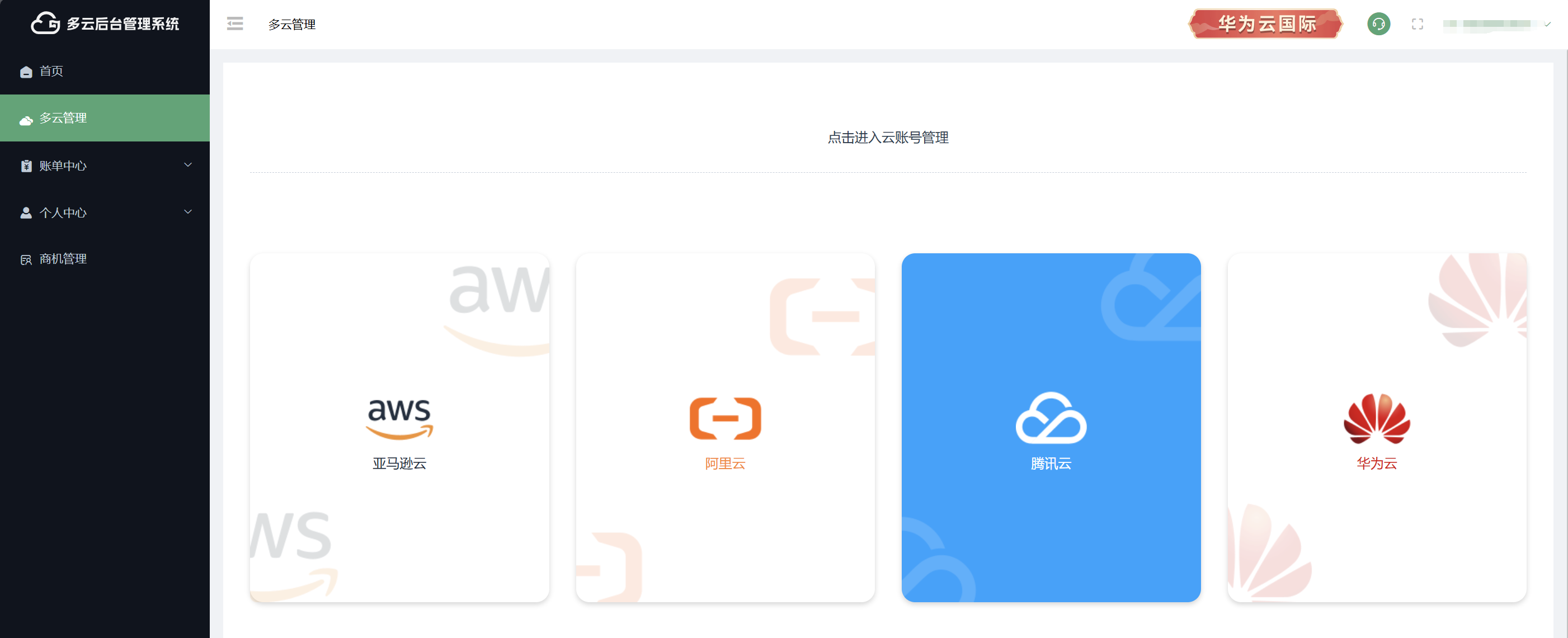 2.登录后,进入“多云管理”版块,选择腾讯云;