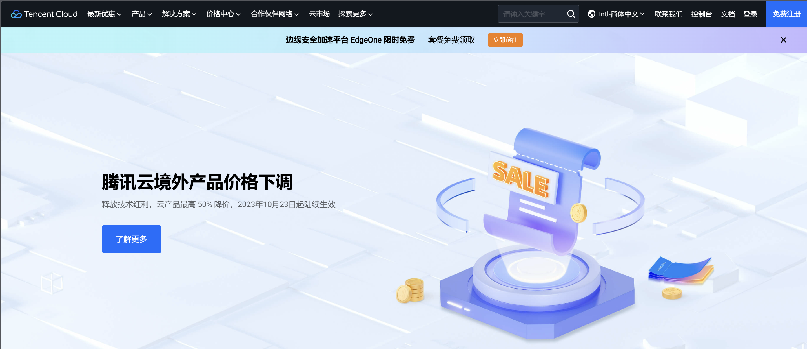 4.注册完成后,前往腾讯云国际站官网(Tencent Cloud)选购产品,查看产品价格;